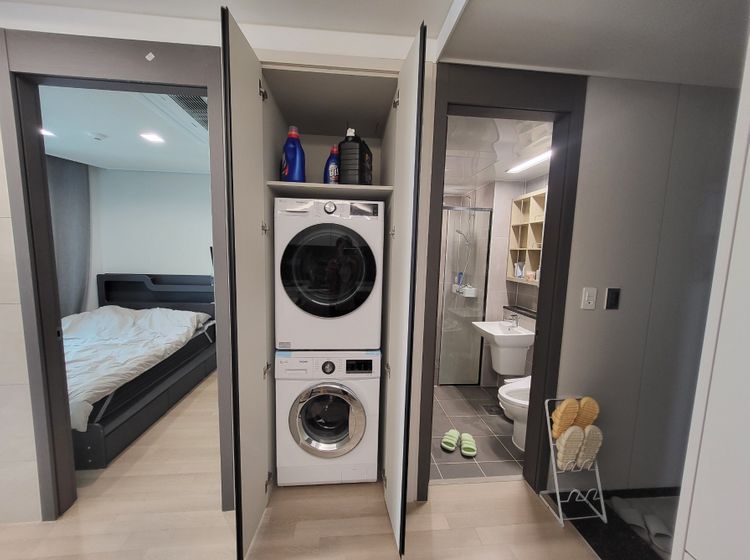 신축 3년 차라 깨끗하고 주위에 편의시설이 많아요 (민락 더 마켓, 광안리해변, 수변공원 등)