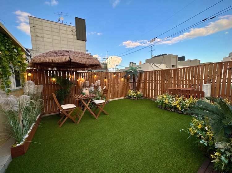 여의도 접근성 좋은 대방역1분거리 단독 옥탑 정원에서 낭만과 감성을 가득 느낄 수 있는 루프탑 하우스입니다. 베이지톤 인테리어와 포근한 조명, 초록 식물과 전구 조명이 어우러진 테라스에서 영화, 수다, 미니 캠핑까지 프라이빗하게 즐겨보세요. 인생사진을 남기고 싶은 커플과 친구, 조용히 머물며 하루를 리셋하고 싶은 분께 잘 어울리는 아늑한공간입니다.