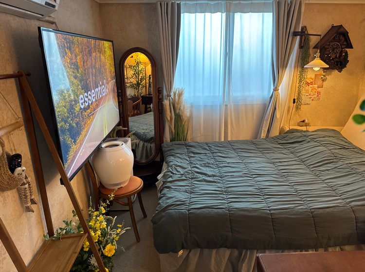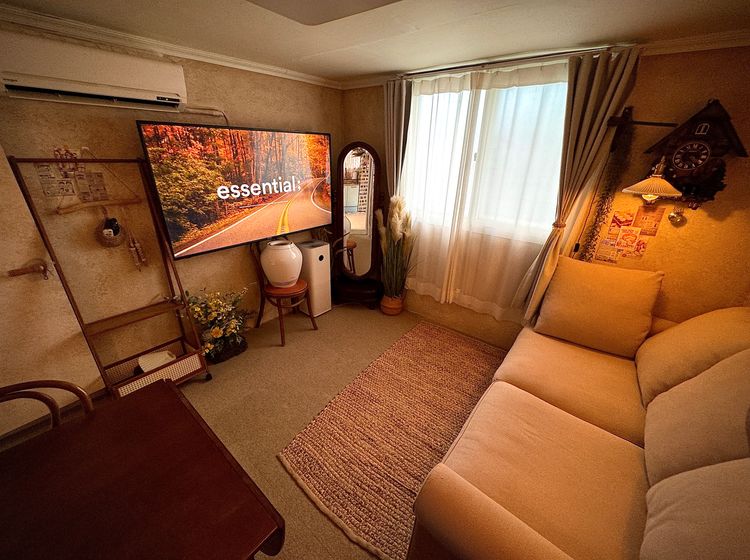 - 방안에는 60인치 벽걸이 TV가 있어 넷플릭스 유튜브 쿠팡플레이 등 자유롭게 이용이 가능합니다.